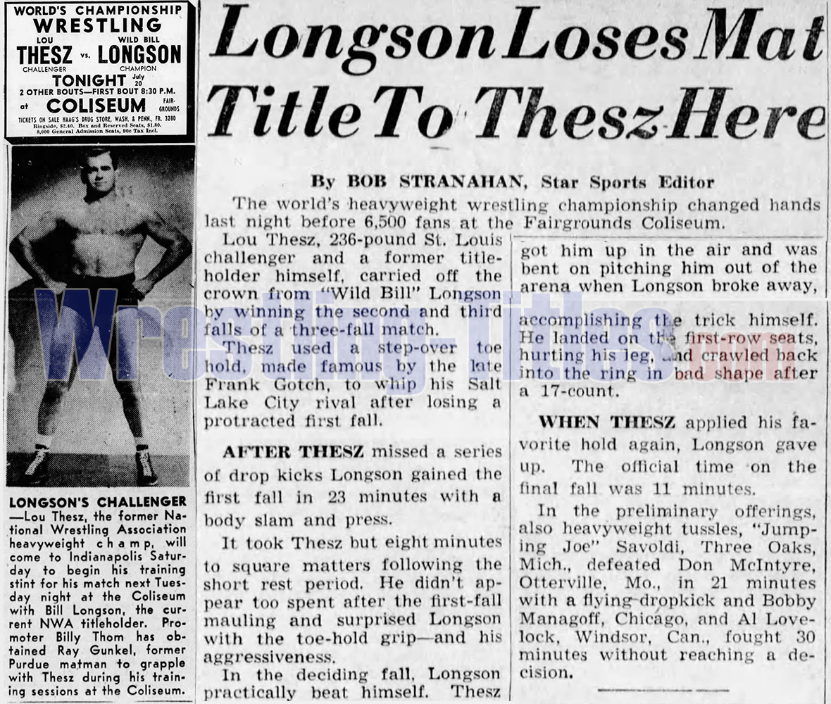 アライアンス結成から2日後の7月20日、インディアナポリスでテーズがビル・ロンソンを破り、アソシエーション王者としては三度目の栄冠を果たす。
