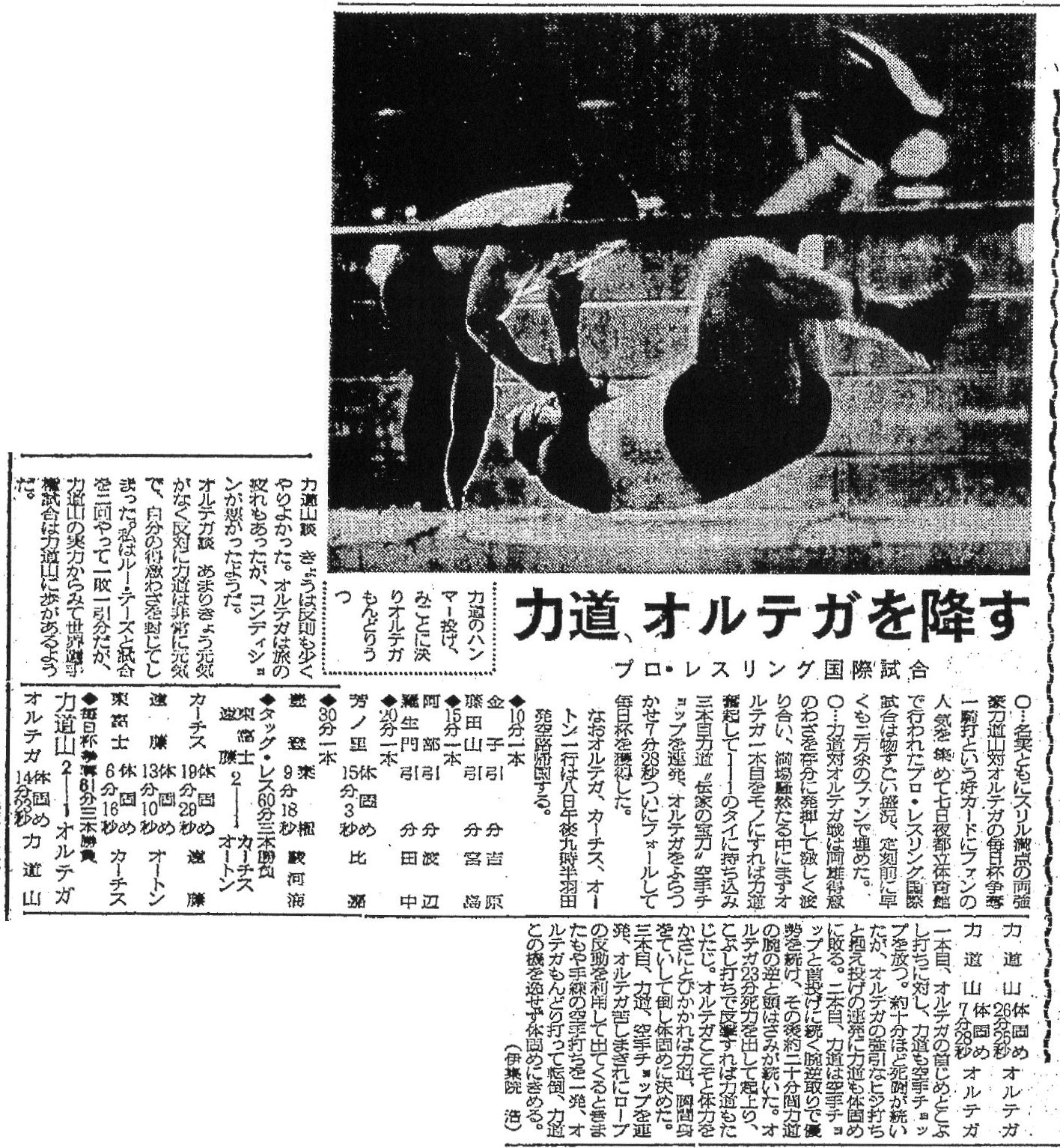 Rikidōzan & Toyonobori (2-0) Jess Ortega & Bob Orton