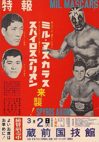 NWA International Tag Team Title: Giant Baba & Antonio & Inoki* (2-1) Mil Mascaras & Spiros Arion
