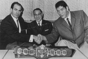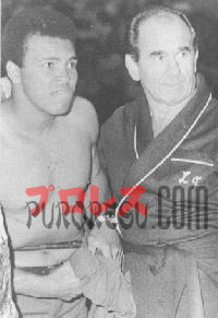 After being trained by the wrestling legends such as George Tragos, Ed "Strangler" Lewis, and Ad Santel, Lou Thesz became the greatest wrestler of this century. As the Unified World Heavyweight champion, he made a record of 936 consecutive wins between 1948 and 1955 when pro-wrestling was respected as a professional sport in the United States. He was the first world heavyweight champion to step on the Japanese soil when "World Heavyweight Title" meant a lot in the sport. He was one of the greatest rivals of Rikidōzan, and many wrestlers who would later become big stars in Japan, including the stars like Antonio Inoki and Giant Baba, aimed to be like Thesz. There has not been any undisputed world heavyweight champion in professional wrestling since Lou Thesz.